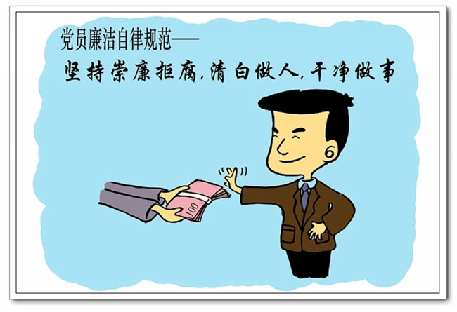 編者按:中共中央新修訂的《中國共產(chǎn)黨廉潔自律準(zhǔn)則》和《中國共產(chǎn)黨紀(jì)律處分條例》已于2016年1月1日起正式施行。為深入推進(jìn)兩項法規(guī)的學(xué)習(xí)貫徹,縣紀(jì)委特推出“漫畫解讀《中國共產(chǎn)黨廉潔自律準(zhǔn)則》、《中國共產(chǎn)黨紀(jì)律處分條例》”系列。希望通過簡潔通俗的漫畫圖解,成為全縣廣大黨員干部的一面鏡子、一把標(biāo)尺,自覺把《準(zhǔn)則》和《條例》內(nèi)化于心、外化于行,嚴(yán)守底線,不闖“紅燈”,做兩項法規(guī)的真實踐行者。