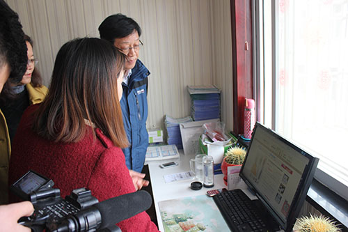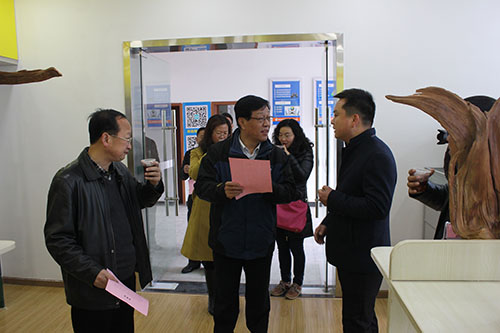 圖為王耀輝一行在湖北愛拉屋電商公司調研