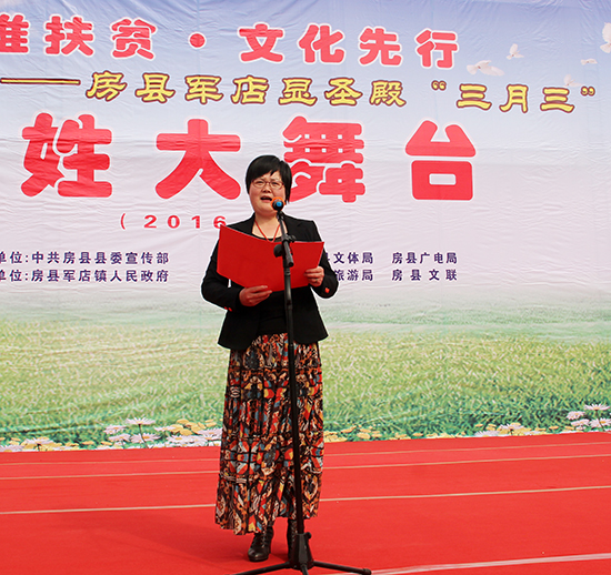 “歷年的軍店三月三顯圣殿民俗活動始終與中華民族燦爛的文化基因相連,與房陵大地的青山綠水相融,在房縣這塊沃土中薪火相傳、歷久彌新,已經(jīng)成為傳承、弘揚優(yōu)秀房陵文化,培育、踐行社會主義核心價值觀的最佳平臺。今年的三月三,唱響的是文化扶貧的主旋律,展現(xiàn)的是房縣干群決戰(zhàn)貧困的信心和決心。這次活動即是民間民俗文化的盛宴,又是便民利民服務(wù)的平臺,還是一幅干群同心、共奔小康的新畫卷!”縣委常委、宣傳部部長徐錦鳳介紹說。