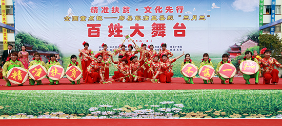 上午9時,展演活動在舞蹈《中國美》優(yōu)美的舞姿中拉開了帷幕。隨后,舞蹈《老來俏》、快板舞《精準(zhǔn)扶貧贊》、少兒舞《看廟會》、歌曲《詩經(jīng)民歌》、花棍舞《共圓中國夢》等19個節(jié)目輪番上演。