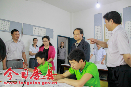 房縣特殊教育學(xué)校建于1990年,多年來,學(xué)校辦學(xué)條件不斷得到改善,現(xiàn)開設(shè)6個(gè)教學(xué)班9個(gè)年級(jí),教職員工22人,學(xué)生來源于本縣和周邊省市,共77名。學(xué)校以“康教結(jié)合、和諧發(fā)展、學(xué)會(huì)生存、適應(yīng)社會(huì)”為核心,全面實(shí)施特教提升計(jì)劃。目前,在開設(shè)文化課程之外,針對(duì)學(xué)生實(shí)際,學(xué)校還開設(shè)書法、繪畫、手工制作、十字繡、盆景養(yǎng)護(hù)等課程,充分發(fā)掘?qū)W生潛能。在該校書法教學(xué)室,孩子們正在老師的指導(dǎo)下,屏氣凝神,認(rèn)真地臨摹書寫。在聾啞學(xué)生何立健身旁,蔡賢忠通過手語(yǔ)老師的翻譯與他親切交流。當(dāng)?shù)弥瘟⒔⊥ㄟ^在特校的學(xué)習(xí),從一個(gè)性格倔強(qiáng),脾氣暴躁什么都不會(huì)的小男孩變成父母眼中懂事的孩子、老師面前的好學(xué)生、學(xué)生心中最牛的學(xué)生會(huì)主席,還多次代表房縣參加省、市殘疾人全運(yùn)會(huì)并獲得多種獎(jiǎng)項(xiàng)時(shí),蔡賢忠勉勵(lì)他繼續(xù)好好學(xué)習(xí),并要求學(xué)校要因材施教,在傳授文化知識(shí)的同時(shí),適時(shí)邀請(qǐng)專家名師做指導(dǎo),把房縣傳統(tǒng)技藝融入教學(xué)之中,讓孩子們掌握一技之長(zhǎng),將來能夠自食其力。