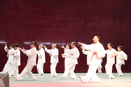 隨后,與會領導、嘉賓及協會會員一起欣賞了精彩的慶祝演出。武當太極拳二十八式、武當三豐太極劍六十四式、武當太極拳十三式、武當伏虎拳、武當太乙五行拳、武當太乙玄門劍等節目令觀眾大飽眼福,其中武當道家功夫館館長陳師宇道長的武當兩億拳表演更是令人贊不絕口。