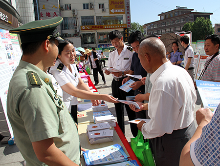 向群眾發(fā)放安全知識(shí)宣傳資料
