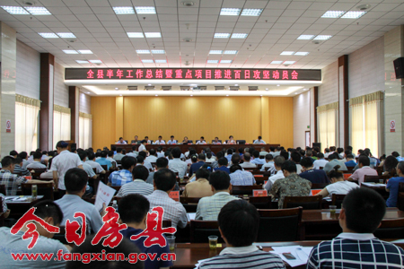 今日房縣網(wǎng)訊 記者 吳宏強(qiáng) 報道: 22日,我縣召開半年工作總結(jié)暨重點(diǎn)項(xiàng)目百日攻堅(jiān)動員會,總結(jié)回顧上半年工作完成情況,安排部署下半年工作,動員全縣上下扎實(shí)開展重點(diǎn)項(xiàng)目百日攻堅(jiān)行動,奮力沖刺全年目標(biāo)任務(wù)。縣委書記、縣人大常委會主任蔡賢忠,縣長紀(jì)道清,縣政協(xié)主席張慧彬,縣委副書記、常務(wù)副縣長王家波,縣委常委、紀(jì)委書記姚天國,縣委常委、宣傳部長徐錦鳳,縣委常委、政法委書記杜啟學(xué),縣委常委、副縣長高明哲,縣委常委、縣人武部部長邵吉民,縣委常委毛堅(jiān)權(quán),縣委常委、組織部長陳剛及在家縣四大家領(lǐng)導(dǎo)出席會議。