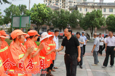 今日房縣網(wǎng)訊 記者 吳宏強 報道: 連日來,我縣持續(xù)高溫,但廣大一線職工仍然戰(zhàn)高溫、斗酷暑,堅守在工作崗位。26日下午,縣委書記、縣人大常委會主任蔡賢忠來到城區(qū)部分路段、企業(yè)生產(chǎn)車間等地,看望慰問奮戰(zhàn)在酷暑的一線職工,為他們“送清涼”。縣委副書記、常務(wù)副縣長王家波參加慰問活動。