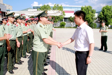 蔡賢忠一行先后來到駐房解放軍某部、武警房縣中隊等地,與廣大官兵一一握手祝賀節(jié)日,了解駐房官兵的工作和生活情況,聽取部隊建設(shè)情況匯報,對駐房官兵為全縣社會穩(wěn)定和經(jīng)濟社會發(fā)展做出的貢獻給予充分肯定;對駐房官兵積極參與搶險救災(zāi)、維護穩(wěn)定、社會公益等活動表示崇高的敬意。蔡賢忠表示,房縣將進一步支持國防和軍隊現(xiàn)代化建設(shè),扎實做好各項保障工作,認真落實擁軍優(yōu)撫安置政策,廣泛開展擁軍優(yōu)屬活動,鞏固和發(fā)展軍政、軍民團結(jié)和社會穩(wěn)定的大好局面。