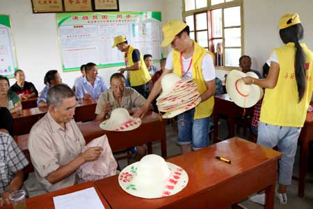 當日上午,37戶貧困戶與荷花園觀光生態農業發展有限公司簽訂了土地耕種合同,該公司負責人程鈺介紹說,公司將為這些貧困戶統一免費供種、統一技術服務、統一市場價收購,保證農民有地種,更有錢賺。二組村民陳家全,六口人三個是殘疾,他認領了5畝土地。陳家全說,他在政府的扶持下,養了500只雞,種了5畝魔芋,再有這5畝地發展些經濟作物,明年脫貧是沒有問題了。據悉,活動當日,愛心驛站的志愿者們還現場為群眾分發了草帽、水杯等物品。