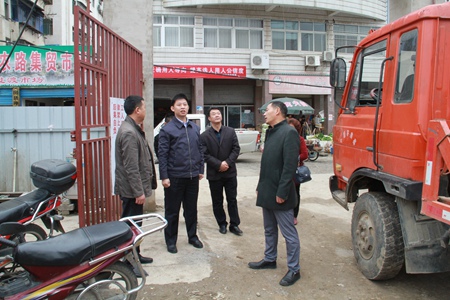 紀道清實地察看聯(lián)觀社區(qū)集貿(mào)市場項目建設情況