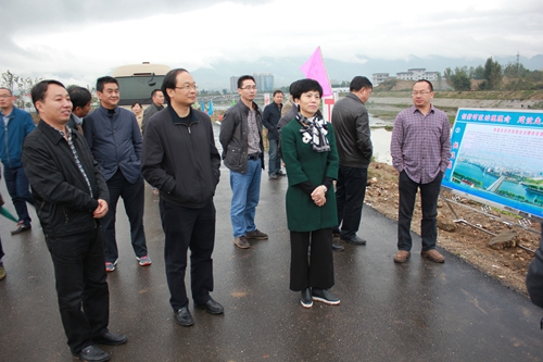 張慧莉一行在紅塔鎮沙溝河治理工程現場