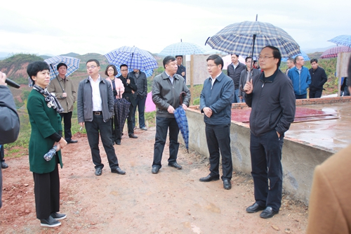 張慧莉一行在軍店鎮三溪溝安全飲水項目建設現場