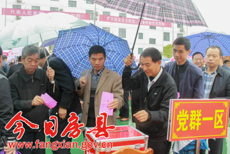 工作人員在對(duì)有關(guān)事項(xiàng)進(jìn)行說(shuō)明后,經(jīng)全體選民舉手表決,大會(huì)選舉辦法及監(jiān)票人、計(jì)票人名單獲得通過(guò),監(jiān)票人檢查票箱,工作人員向選民發(fā)放選票,并對(duì)填寫選票的方法和應(yīng)當(dāng)注意的問(wèn)題進(jìn)行詳細(xì)說(shuō)明。蔡賢忠等領(lǐng)導(dǎo)依次領(lǐng)取選票、認(rèn)真填寫,并走到票箱前鄭重投上選票。其他選民也依次排隊(duì)將填好的選票投入票箱,依法行使自己的民主權(quán)利。該選區(qū)將選舉產(chǎn)生縣十八屆人民代表大會(huì)代表2人。