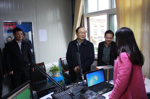 蔡賢忠一行在房縣廣播電臺(tái)看望工作人員