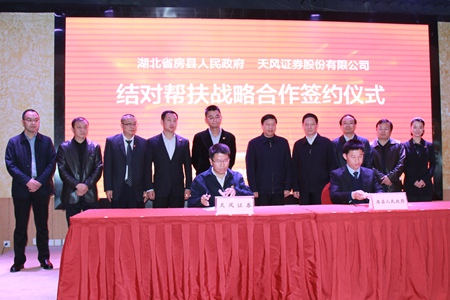 今日房縣網(wǎng)訊 記者趙愛平 通訊員盧鳳琴 報道:11月20日,天風(fēng)證券股份有限公司與房縣人民政府在十堰正式簽署“一司一縣”結(jié)對幫扶戰(zhàn)略合作框架協(xié)議。