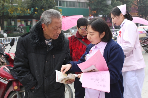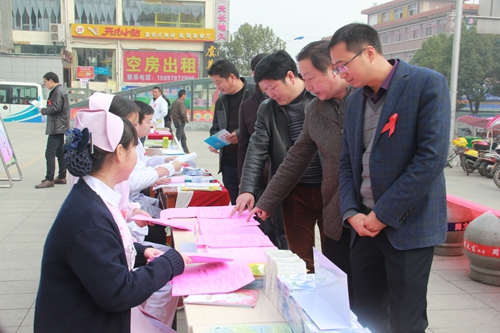 活動(dòng)現(xiàn)場(chǎng)醫(yī)護(hù)人員向群眾宣傳艾滋病防控知識(shí)