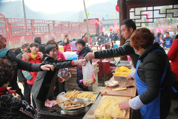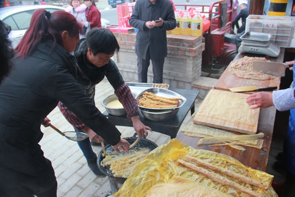 當(dāng)?shù)卮迕裾谂胫品靠h特色美食“卷卷”