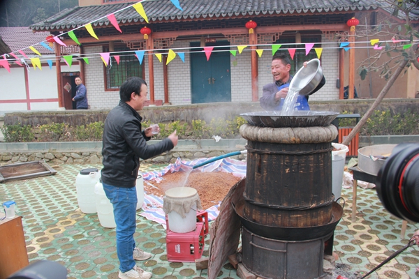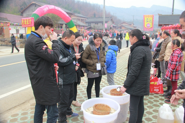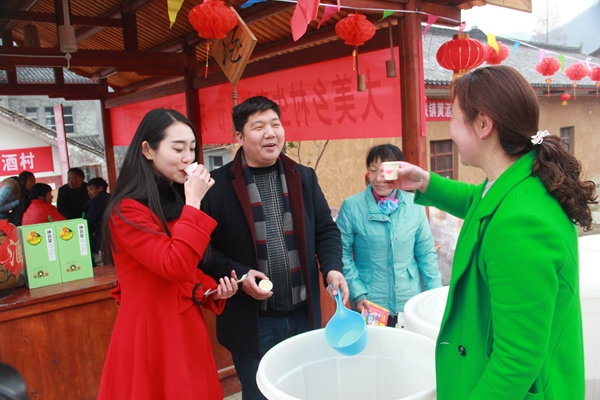 活動安排了精彩的文藝節(jié)目、豐富的特產(chǎn)年貨和豐盛美味的午餐。當(dāng)?shù)剞r(nóng)戶為游客提供了黃酒、香菇、木耳、臘干野菜等20多種農(nóng)特土產(chǎn)品,在自家門前現(xiàn)場土法蒸酒、宰殺土豬、土牛、土羊……游客在村里購?fù)撂禺a(chǎn)、吃年豬宴、喝洑汁酒、聽敬酒歌、看船燈舞,充分享受農(nóng)村特有的年味。