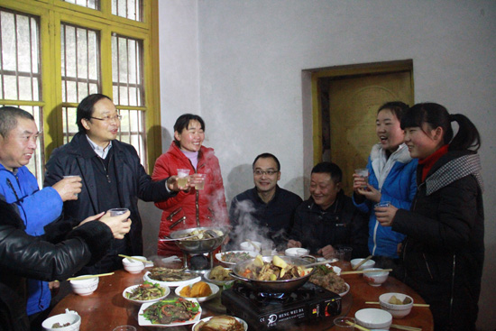 吃著富有農(nóng)家特色的菜肴,說(shuō)著如春風(fēng)般的暖心話,大家紛紛舉杯,相互祝福新一年工作順利、生活越過(guò)越好。