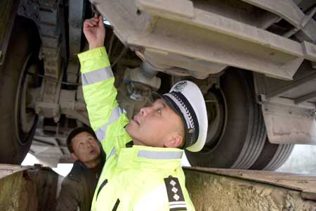 行駛客運車輛的安全很大程度上取決于出站前的安全檢查,因此出站前的安全檢查被喻為保護旅客人生安全的第一道防線??h公安局交警大隊55歲的民警趙奎就是這條生命線的守護人。