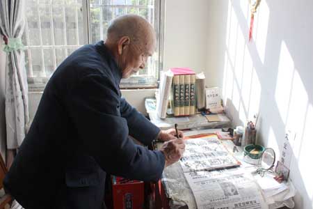 吃過團年飯,93歲的光榮院院民張發祥照例習字,現場賦詩一首《美日子》:“一從華夏鑄輝煌,贏來萬邦放眼量;綠水青山美畫圖,豐衣足食好時光。堯天舜地民稱頌,改革開放國運昌,幾屆中樞紆籌策,小康社會譜華章?!?