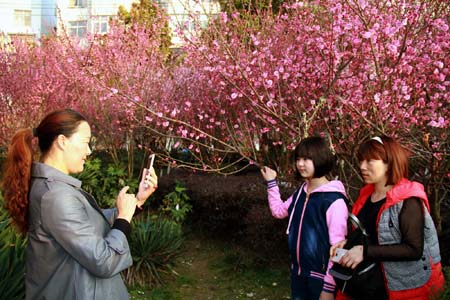 日前,市民在西河公園生植物園盛開的臘梅前拍照。隨著天氣的逐漸轉暖,房陵大地處處呈現出一派春天的美景,市民們賞花、自拍、聞香、品梅,讓游人沉醉不已。(趙愛平 劉偉 攝)
