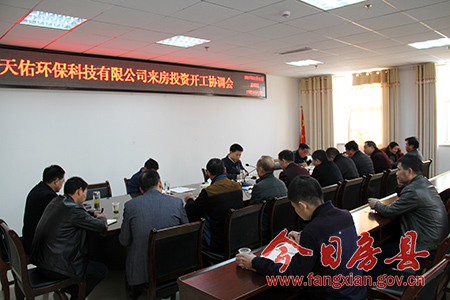今日房縣網訊 記者毛俊杰 報道:3月2日,我縣召開湖北天佑環保科技有限公司來房投資項目開工專題協調會。縣委副書記、縣長紀道清,副縣長丁選清,縣政府黨組成員熊祖友出席會議。縣招商、國土、環保、住建、供電、南水北調辦等部門負責人參加會議。