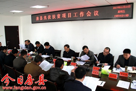 會(huì)議研究討論了《房縣光伏扶貧工作實(shí)施方案》(草案);與會(huì)人員就光伏扶貧項(xiàng)目選址、資金落實(shí)、建設(shè)運(yùn)營(yíng)方式等工作進(jìn)行了討論發(fā)言。