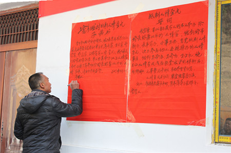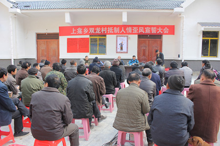村民正在“抵制人情歪風”承諾書上簽字