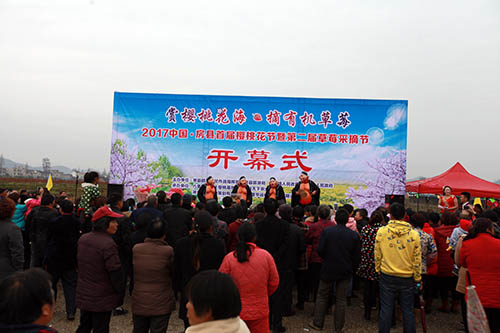今日房縣網訊 記者趙愛平 通訊員王東 柯勇 報道:3月4日,房縣首屆櫻桃花節暨第二屆草莓采摘節在城關鎮八里村櫻桃基地和軍店鎮禾益天下農業觀光園盛大開幕。活動旨在通過櫻桃花節和草莓采摘節的宣傳效應,預熱櫻桃采摘節、牡丹花節,培育賞花采摘旅游新業態,促進農旅融合,推進鄉村休閑旅游又好又快發展。