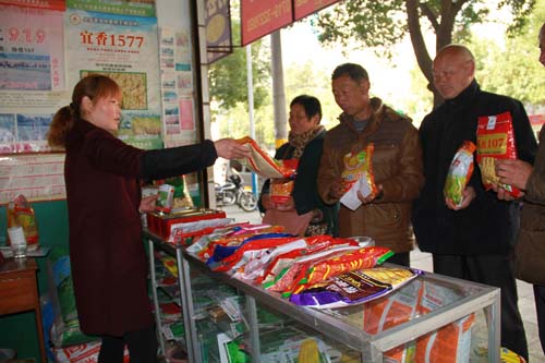 紅塔鎮(zhèn)五龍村二組農(nóng)民郭長合等村民在縣農(nóng)業(yè)局種子公司門市部購買良種(趙愛平攝)