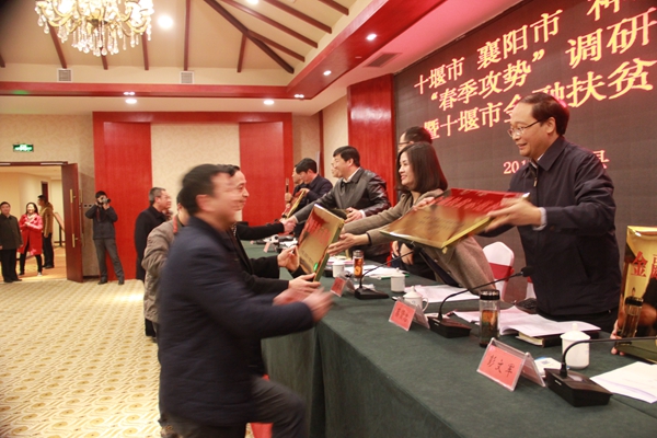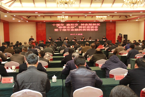 今日房縣網(wǎng)訊 記者陳銳 報(bào)道:3月15日,十堰市、襄陽(yáng)市、神農(nóng)架林區(qū)脫貧攻堅(jiān)“春季攻勢(shì) ”調(diào)研座談會(huì)暨十堰市金融扶貧現(xiàn)場(chǎng)會(huì)在我縣召開(kāi)。省扶貧辦黨組成員、副主任項(xiàng)克強(qiáng),十堰市 委副書(shū)記、政法委書(shū)記胡超文,市扶貧辦主任彭文軍,縣委書(shū)記、人大常委會(huì)主任蔡賢忠,縣委副書(shū)記、縣長(zhǎng)紀(jì)道清出席會(huì)議。十堰市直、襄陽(yáng)市直相關(guān)部門(mén)及兩地各縣(市、區(qū))相關(guān)負(fù)責(zé)人 ,神農(nóng)架林區(qū)、相關(guān)金融單位負(fù)責(zé)人參加會(huì)議。