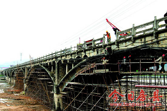 近日,施工人員正在除險加固孫家灣大橋。目前,我縣正在實施孫家灣大橋除險加固、半島灣大橋建設及吉甫南路、詩經大道南路和西安路連通工程建設等交通項目,預計今年10月底前竣工。這些項目建成后,我縣縣城將形成內有連線、外有環線的城市道路交通格局。(特約記者張啟龍 通訊員唐雪松 攝)