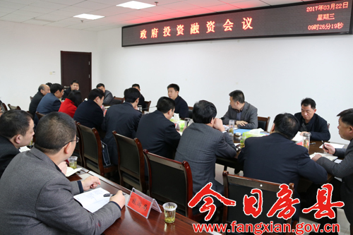 今日房縣網(wǎng)訊 記者王瑋 通訊員吳鵬 報道:22日,縣委副書記、縣長紀(jì)道清召開專題會議,研究2017年政府投融資工作。縣委常委、常務(wù)副縣長肖大有,縣政府黨組成員熊祖友、劉慶海及相關(guān)縣直部門部門、各金融部門負(fù)責(zé)人參會。