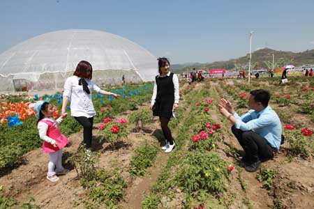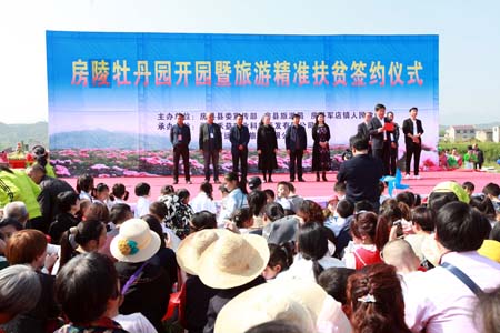 房陵牡丹園牡丹種植面積39萬平方米,品種繁多,各色牡丹將這里變身花海,為游客帶來一場驚艷的視覺盛宴。游客們置身在這樣夢幻般花的殿堂中,欣賞牡丹,觀看演出,品嘗美食,購買土特產品,其樂無窮。