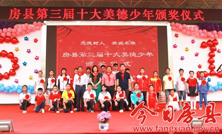 今日房縣網訊 記者陳紹杰報道: 1日,縣東城小學操場上人山人海、歌舞飛揚,由縣精神文明建設委員會主辦,縣委宣傳部、文明辦承辦,縣教育局、團縣委、婦聯、關工委、新聞中心、電視臺、東城小學協辦的“立德樹人 關愛未來”——2017年房縣第三屆十大美德少年頒獎儀式暨慶祝“六一”國際兒童節文藝演出在這里隆重舉行。來自全縣的“美德少年”代表、東城小學、花寶小學全體師生代表等近千名小朋友載歌載舞,一起歡度快樂“六一”兒童節。