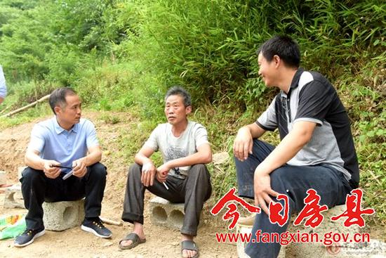駐村第一書記邊煥新(左一)正在與村民交流