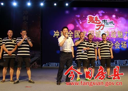 今日房縣網(wǎng)訊 記者趙愛(ài)平 劉臣 報(bào)道:愛(ài)我家鄉(xiāng),挺我十堰,魅力中國(guó)城,十堰加油!8月11日,房縣在詩(shī)經(jīng)文化廣場(chǎng)舉行了“沖刺全國(guó)文明城·決戰(zhàn)魅力中國(guó)城”網(wǎng)絡(luò)投票電視網(wǎng)絡(luò)直播活動(dòng),5000多市民現(xiàn)場(chǎng)為十堰競(jìng)演《魅力中國(guó)城》吶喊助威。縣委書(shū)記蔡賢忠作動(dòng)員講話。縣委副書(shū)記、縣長(zhǎng)紀(jì)道清現(xiàn)場(chǎng)拉票。王家波、高明哲、王宇星、祁國(guó)鵬、肖大有、陳剛、高勇、付必久等在家的縣四大家領(lǐng)導(dǎo)出席活動(dòng)。