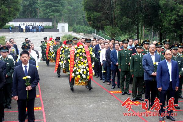 蔡賢忠、紀(jì)道清、王家波、徐錦鳳、高明哲、王宇星、祁國(guó)鵬、肖大有、陳剛、高勇、阮登香、付必久等四大家領(lǐng)導(dǎo),縣直機(jī)關(guān)干部、駐房部隊(duì)、武警官兵、少先隊(duì)員及各界人士代表一起來(lái)到縣烈士陵園,向?yàn)槊褡濯?dú)立與房縣解放事業(yè)英勇獻(xiàn)身的先烈們緬懷致敬。