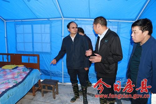 蔡賢忠一行現(xiàn)場了解群眾臨時安置情況