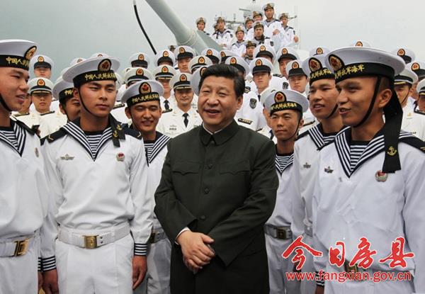 2012年12月8日,習(xí)近平在海軍海口艦上與水兵親切交談。新華社記者 王建民 攝