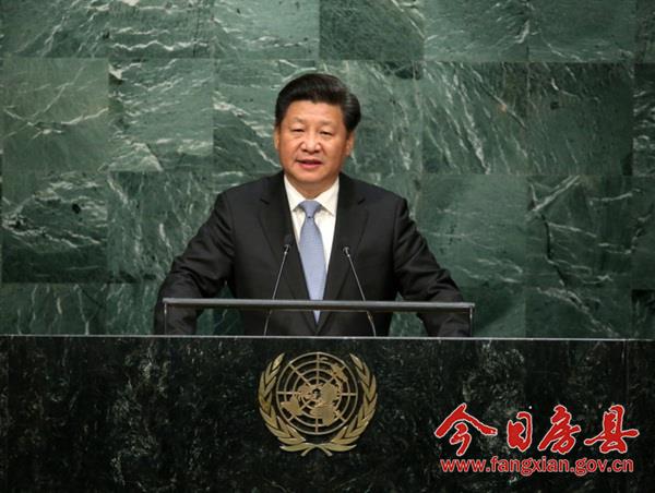 2015年9月28日,習(xí)近平在紐約聯(lián)合國總部出席第70屆聯(lián)合國大會(huì)一般性辯論并發(fā)表題為《攜手構(gòu)建合作共贏新伙伴同心打造人類命運(yùn)共同體》的重要講話。新華社記者 龐興雷 攝
