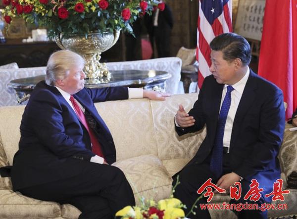 2017年4月6日,習(xí)近平在美國佛羅里達(dá)州海湖莊園同美國總統(tǒng)特朗普舉行中美元首會(huì)晤。新華社記者 蘭紅光 攝