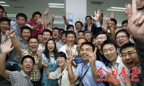 2013年8月29日,習(xí)近平在東軟集團(tuán)(大連)有限公司同年輕員工親切合影。新華社記者 鞠鵬 攝