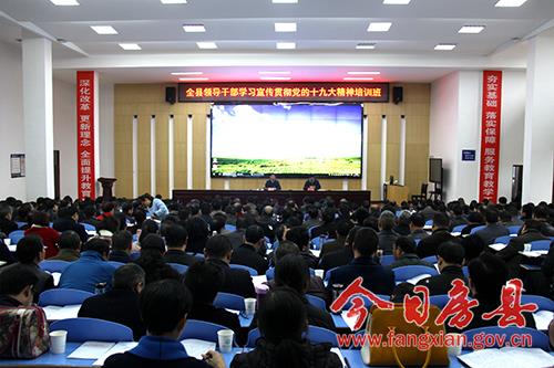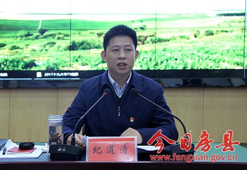 紀(jì)道清強調(diào),要深刻把握黨的十九大精神實質(zhì),開啟新時代中國特色社會主義新征程。把學(xué)習(xí)貫徹黨的十九大精神作為黨的十九大后第一堂政治必修課,從明確新主題、取得新成就、邁進新時代、確立新思想、產(chǎn)生新班子、描繪新藍(lán)圖、明確新使命、作出新部署、提出新要求,這“九個新”把握黨的十九大精神,切實學(xué)懂弄通做實,武裝頭腦,指導(dǎo)實踐,推動工作。要深入貫徹新時代發(fā)展新要求,努力開創(chuàng)房縣各項事業(yè)新局面。將新發(fā)展理念落實在崗位上、落實到行動上,奮力開創(chuàng)房縣各項事業(yè)新局面,做好“十個緊密結(jié)合”:緊密結(jié)合全面建成小康社會,推進脫貧攻堅;緊密結(jié)合供給側(cè)結(jié)構(gòu)性改革,加快產(chǎn)業(yè)轉(zhuǎn)型升級;緊密結(jié)合創(chuàng)新驅(qū)動發(fā)展戰(zhàn)略,培育發(fā)展動能;緊密結(jié)合鄉(xiāng)村振興戰(zhàn)略,推動農(nóng)業(yè)農(nóng)村現(xiàn)代化;緊密結(jié)合區(qū)域協(xié)調(diào)發(fā)展戰(zhàn)略,構(gòu)建多極支撐;緊密結(jié)合開放發(fā)展理念,增強發(fā)展后勁;緊密結(jié)合綠色發(fā)展理念,建設(shè)美麗房縣;緊密結(jié)合以人民為中心的發(fā)展思想,增進民生福祉;緊密結(jié)合依法治國戰(zhàn)略,打造法治政府;緊密結(jié)合黨的建設(shè)新要求,全面從嚴(yán)治黨。要深入推進實干實為,為滿足人民對美好生活需求開辟新境界。始終把發(fā)展作為第一要務(wù)不動搖,把擔(dān)當(dāng)作為資格不動搖,把實干作為作為重要標(biāo)尺不動搖,用新思想提升新精神、新本領(lǐng)、新?lián)?dāng)、新作為,把學(xué)習(xí)成果轉(zhuǎn)化為理想信念、核心意識、使命擔(dān)當(dāng)、斗爭精神、實際成效,努力構(gòu)建區(qū)域發(fā)展新的增長極。