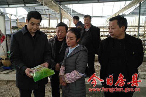 劉海軍在九道鄉(xiāng)咸池溝村食用菌基地調(diào)研產(chǎn)業(yè)扶貧情況