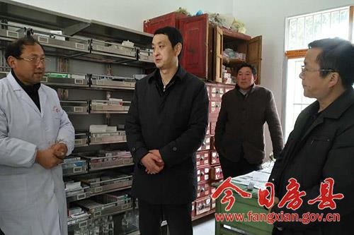 劉海軍在九道鄉(xiāng)八里坡村衛(wèi)生室調(diào)研健康扶貧工作