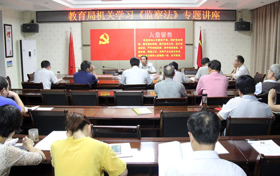 今日房縣網(wǎng)訊 通訊員付培文 報(bào)道: 9月13日,房縣教育局組織機(jī)關(guān)全體黨員干部開(kāi)展黨規(guī)黨紀(jì)和國(guó)家監(jiān)察宣傳教育“十進(jìn)十建”活動(dòng),并邀請(qǐng)專家律師程克剛作《監(jiān)察法》專題輔導(dǎo)。