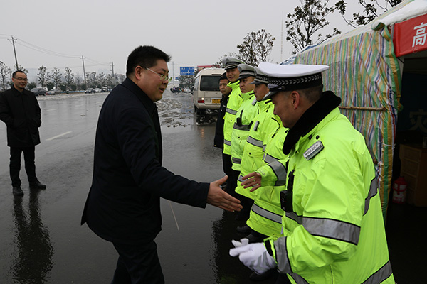 在高警大隊(duì)、縣電視臺(tái)、綜合執(zhí)法局、信訪局、機(jī)要局慰問時(shí),肖大有向奮斗在一線的工作人員表示衷心感謝和親切慰問。肖大有強(qiáng)調(diào),春節(jié)將至,越是節(jié)日趙是交通、城市秩序管理難度大,越是廣大人民群眾需要我們的時(shí)候,希望高警大隊(duì)、執(zhí)法局執(zhí)法人員要繼續(xù)發(fā)揚(yáng)奉獻(xiàn)精神,嚴(yán)格執(zhí)法、熱情服務(wù)努力為全縣人民群眾營(yíng)造順暢、有序的出行和城市環(huán)境;電視臺(tái)要全力抓好春節(jié)期間廣播電視播放工作,保障節(jié)日期間市民文化娛樂需求;信訪局、機(jī)要局有關(guān)工作人員,要堅(jiān)持抓好春節(jié)值班工作,確保節(jié)日期間市民訴求反映和上級(jí)指令下達(dá)順暢。
