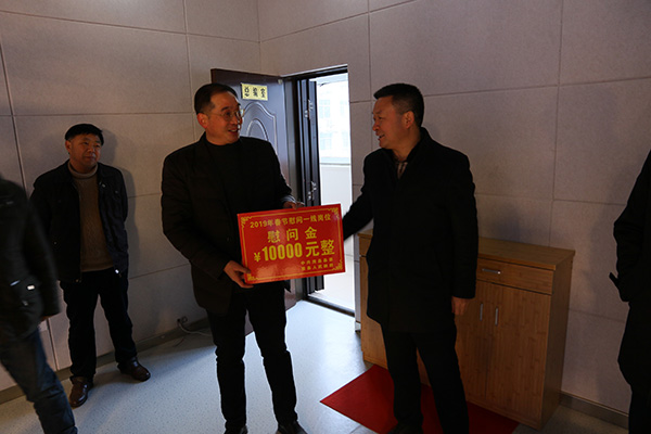 今日房縣網(wǎng)訊?記者陳銳 報(bào)道:?帶著黨和政府的親切關(guān)懷,帶著新春祝福,1月31日上午,縣委副書記肖大有,縣人大常委會(huì)黨組書記、主任高明哲,縣委黨委、常務(wù)副縣長(zhǎng)陳剛,縣委常委、縣委辦主任付必久,縣委常委人武部部長(zhǎng)萬(wàn)啟武,副縣長(zhǎng)、公安局局長(zhǎng)陳偉一行,先后到縣110指揮中心、消防大隊(duì)、看守所、高警大隊(duì)、電視臺(tái)、綜合執(zhí)法局、信訪局、機(jī)要局等地看望慰問駐房武警官兵和奮斗在一線的工作人員及陳士欣烈士家屬蔡自艷、老黨員王天佑、困難勞模買德英、退休老干部戢逢尤、優(yōu)撫對(duì)象劉從明,向他們送上節(jié)日的祝福和慰問金。
