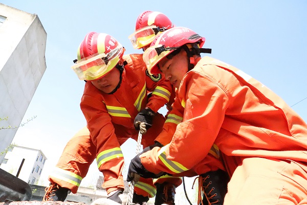 “我的腳好痛啊,留了好多血,可能是被刺穿了,快救救我。”被困電焊工人不停的呼救,“你先不要動,我們馬上下來救你”消防救援人員在安撫被困電焊工人情緒的同時,迅速確定救援方案,從罐頂入口放入一根軟梯由兩名消防員順著軟梯進入儲罐內部,在確認被困人員傷情后,利用隨身攜帶的繩索和安全吊帶將被困人員固定,“一、二、三,用力”罐頂的消防員將被困人員往上拉,經過20余分鐘的緊張救援,電焊工人被成功救出送往醫院接受治療。