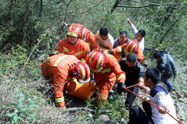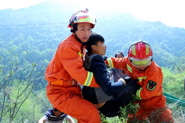 事發地點距離房縣縣城約50公里,消防救援人員到達事故現場時,當地群眾和青峰鎮上的醫療救護人員已經下到山崖下方將兩名傷者從車內救出,由于山崖過于陡峭無法將傷員運送至救護車上,消防救援人員利用道路護欄作支點,鋪設一條120余米的繩索,受傷較輕的司機由救援人員采取背、抬的方式進行轉移,受傷較重的隨車人員則利用多功能救援擔架進行固定后轉移。經過約70分鐘的緊張救援,兩名傷者被成功救出送往醫院進行治療。